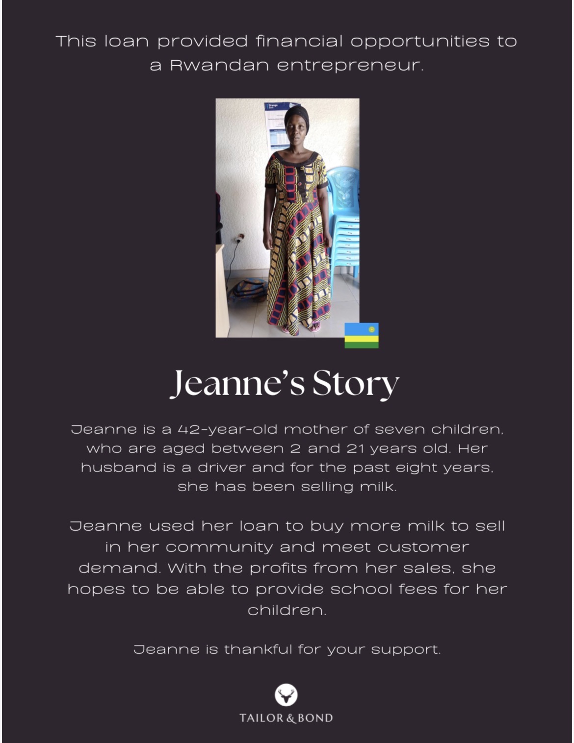 Through our partnership with Tailor & Bond, each purchase contributes to empowering women entrepreneurs in under-resourced communities around the world.